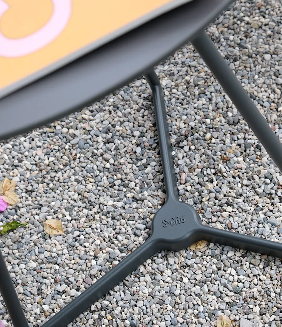 The Atomo project stems from the need to create a table capable of fitting into any environment and becoming its focal point. Lightweight and sturdy, the aluminium structure consists of a die-cast ground base onto which the legs supporting the top are attached.