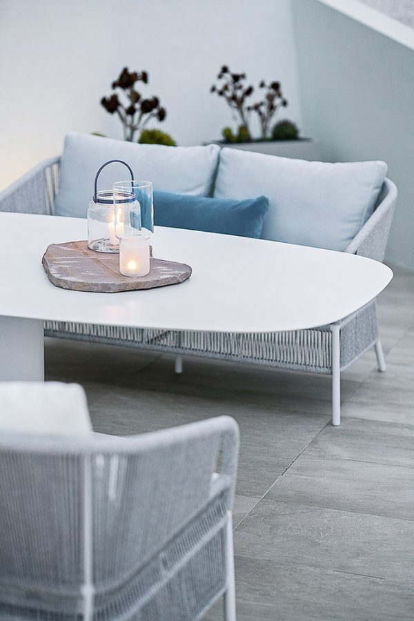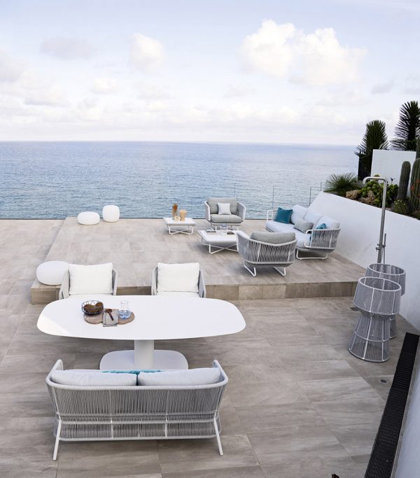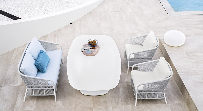 An essential design based on soft and rounded lines defines the modern and convivial aesthetic of the Big fixed table. A sturdy central cylindrical stem joins the top to the base, both elliptical in shape, giving solidity to the structure.The Big fixed table is an elegant and versatile choice, suitable for the terraces of bars and restaurants as well as for the outdoor dining areas of private residences.
