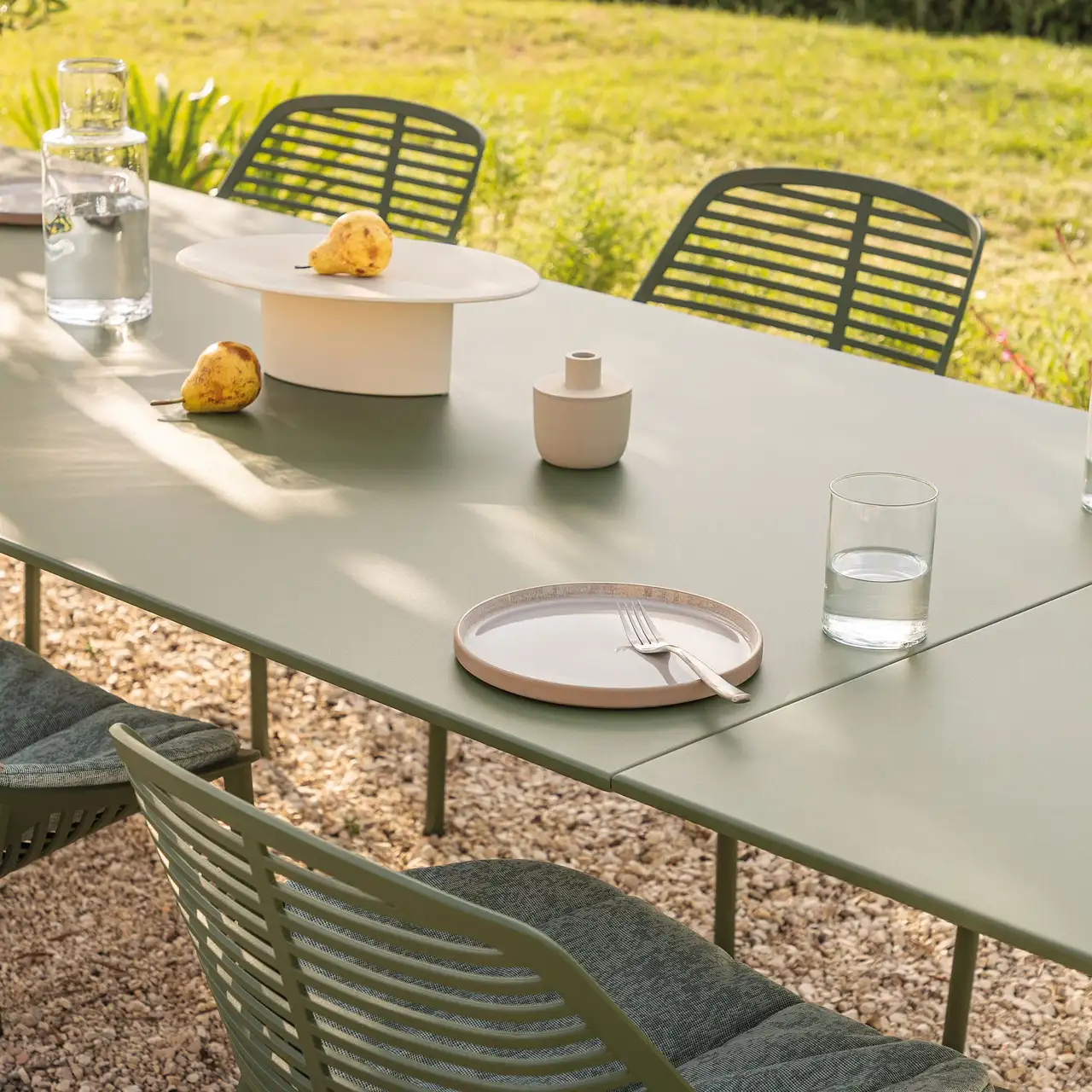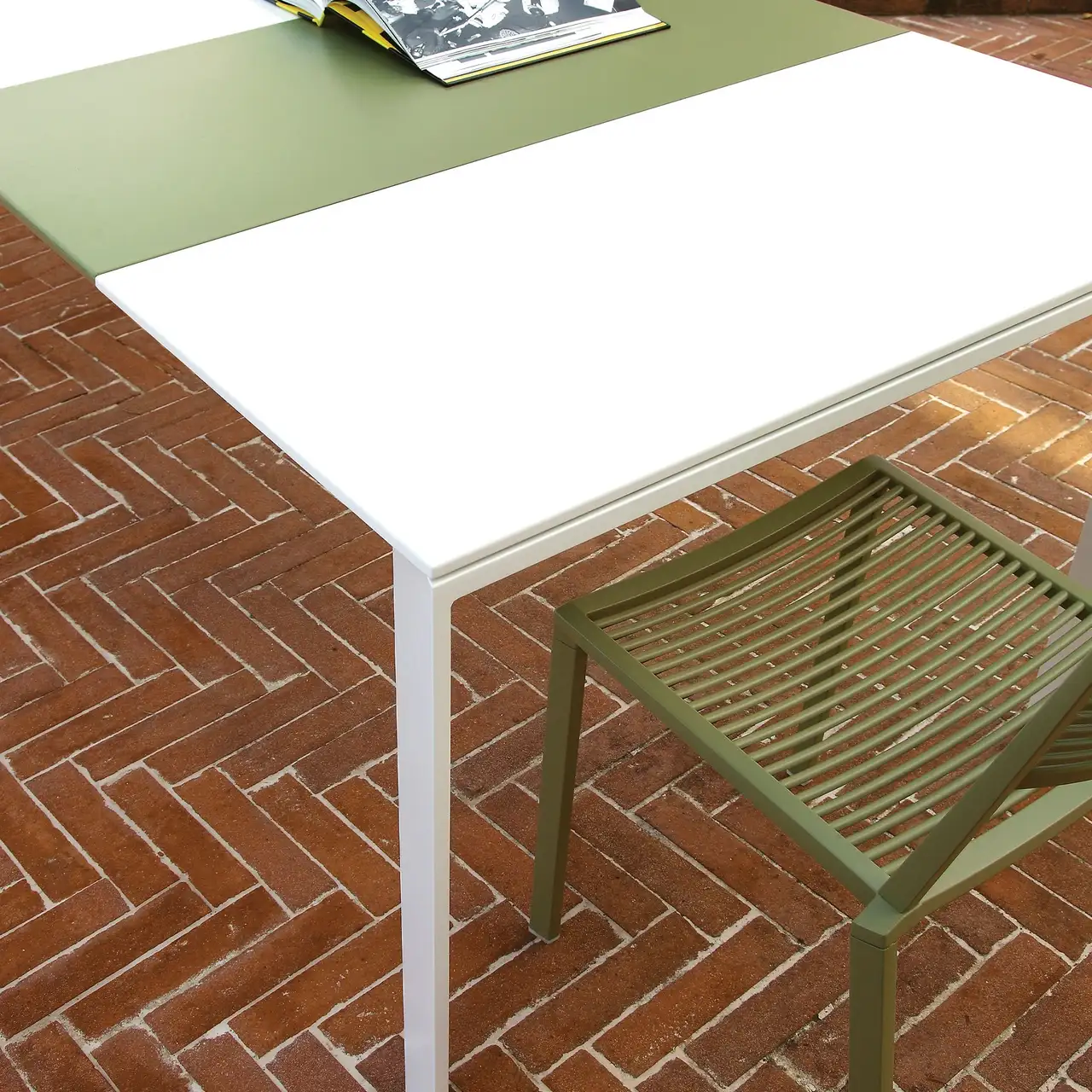 Extendible rectangular table in painted aluminium, with extensions