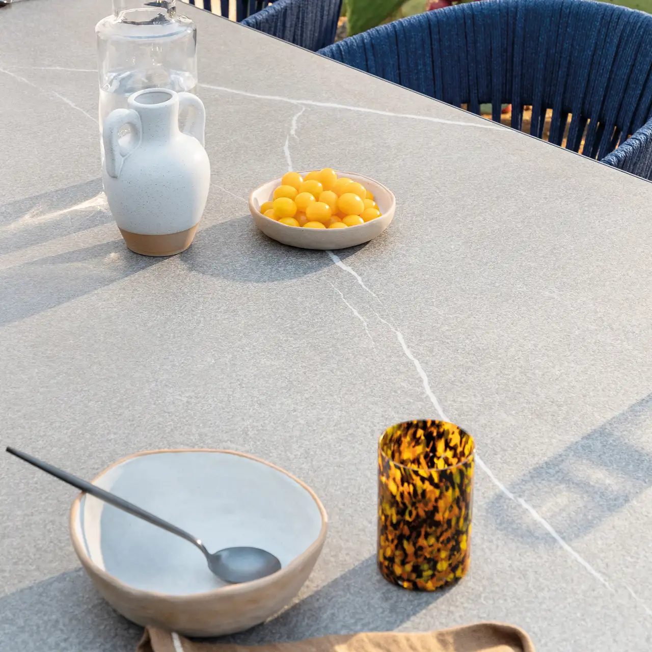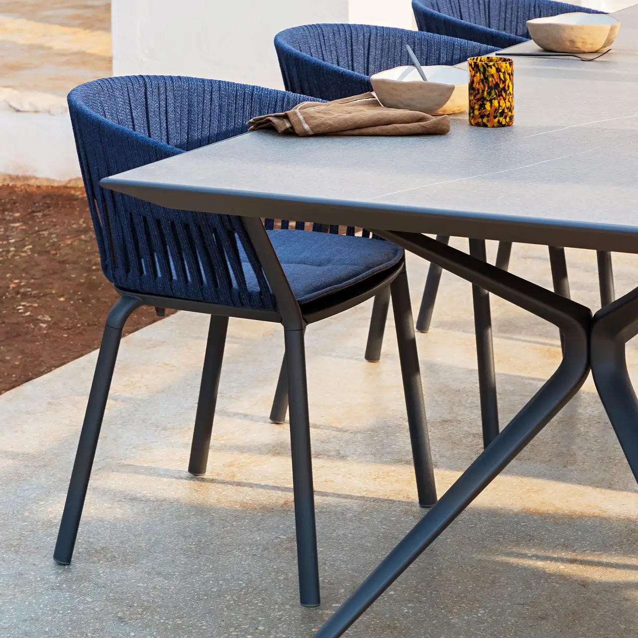 Rectangular table in painted aluminium with top in porcelain stoneware