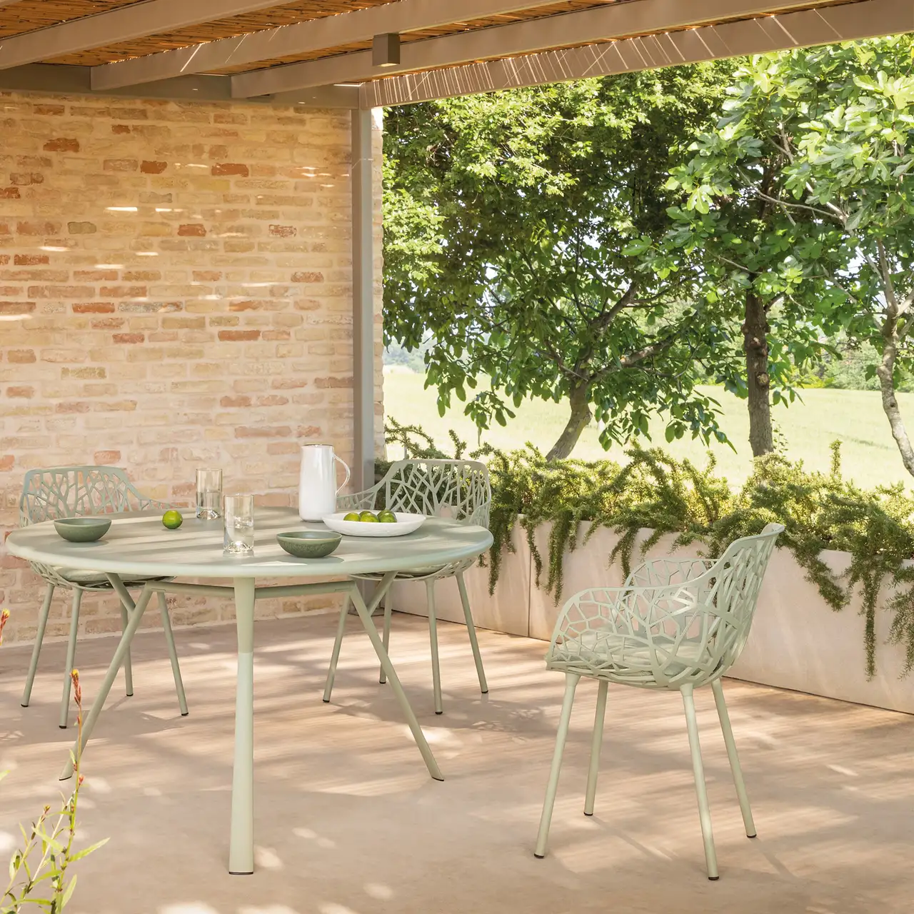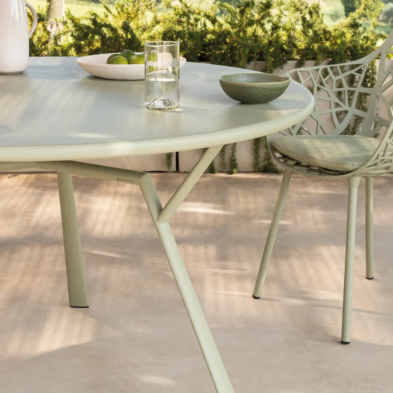 Round table in painted aluminum