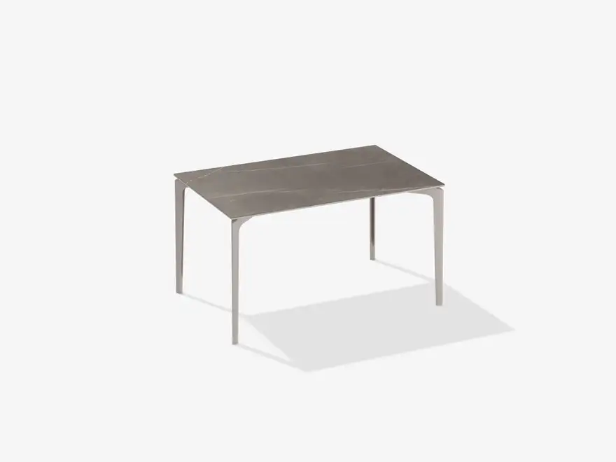 Inspired by one of the most romantic cities, the Venice dining table is perfect for moments of conviviality. The sublime charm of this design element is given by the glossy ceramic surface of the top, which evokes the sparkling waters of the Venetian canals. From the warm shades of sunset to the cold shades of dusk, the color gamut of the lava stone top contemplates all the shades of the sea. The monolithic design goes well with the lightness of the materials and the synergy between the elements, painting the atmosphere of the garden and the outdoor living room with refined elegance.
