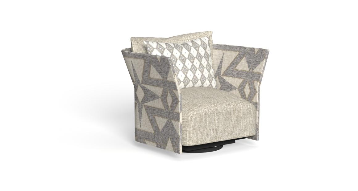 The swivel lounge armchair features a spacious, comfortable padded seat, complemented by a swivel base that emphasizes its versatility and modern character. Perfect for enhancing any outdoor environment, it blends functionality and design into a unique piece of furniture. The cushions are completely removable, and the fabrics are designed for outdoor use, making them waterproof, easy to clean, and built to last, maintaining the product’s beauty even in adverse weather conditions.