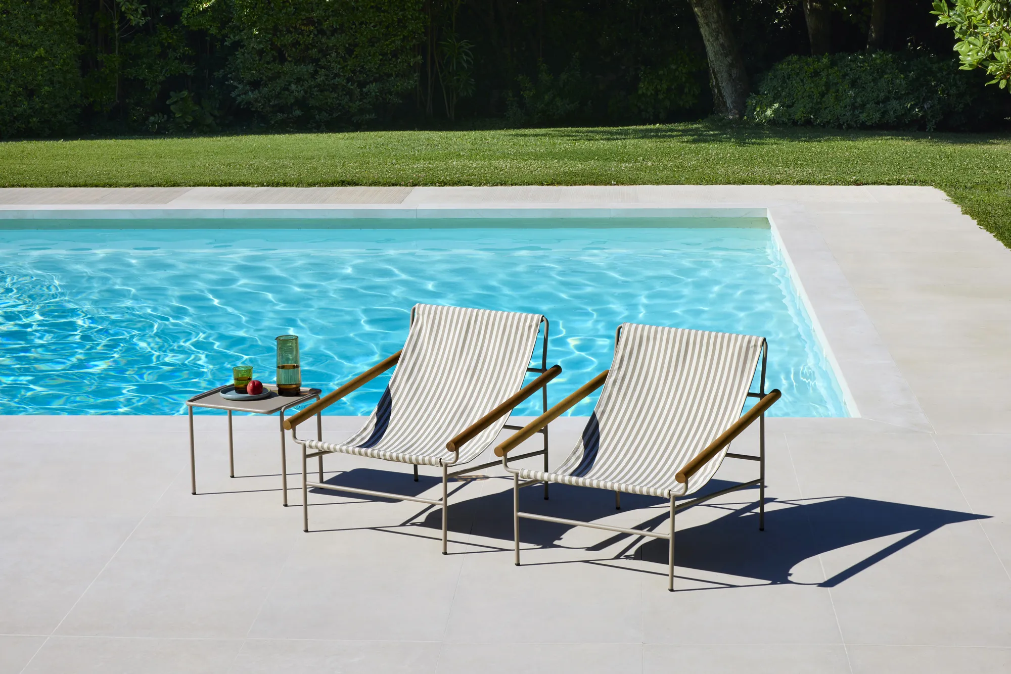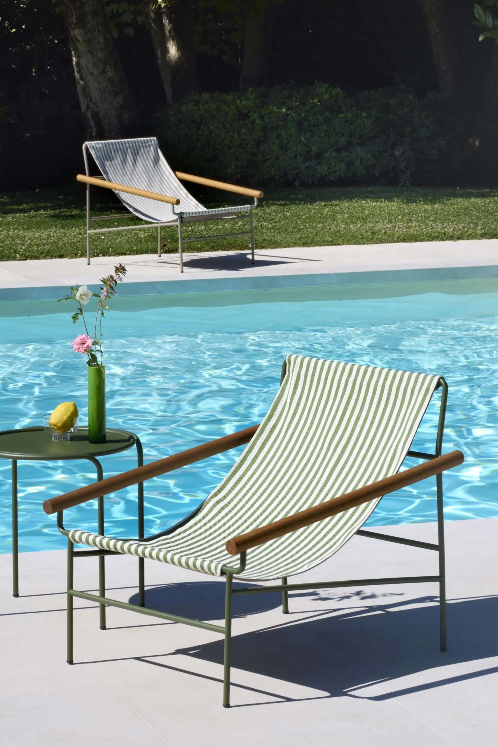 The new DRESS_CODE armchair is inspired by the canons of haute couture, playing with the combinations of colours between structure and seat, with the indoor and outdoor fabrics patterns, and with their upholstery: in addition to the smooth and flat fabric version, there is a quilted version in big squares, and a padded, wave-shaped version. The quilting and padding are both an aesthetic element and a source of greater comfort.