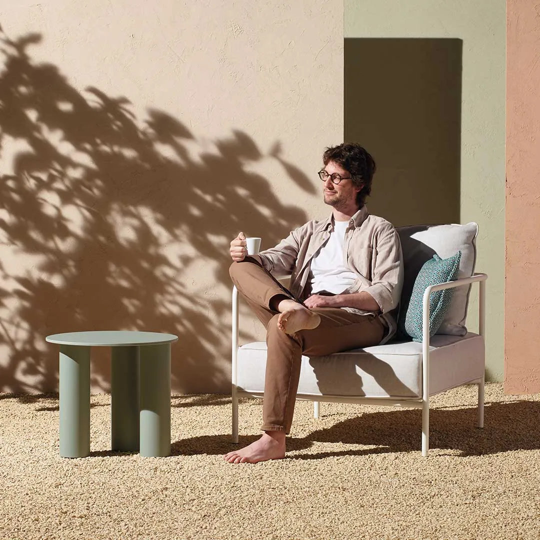 The Flap modular upholstered furniture family extends to incorporate three new components: an armchair, a pouf, and a chaise longue. Designed to respond with even more flexibility to both the desire for comfort and the specific characteristics of each space, these pieces allow further articulation and rhythm in seating composition, offering new support surfaces, and multiplying opportunities for arrangement and exchange. The distinctive features that distinguish the line remain unchanged, like the metal tubing of the structure, thin and minimalist, and the support provided by the flaps, the inclined ailerons on which the large backrest cushions rest.