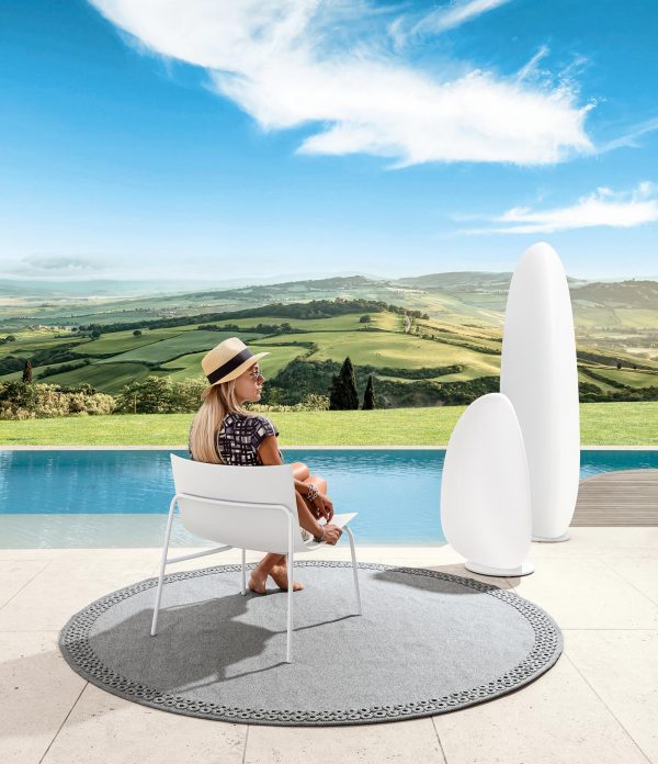 The Malè living armchair follows the elegant and light lines characterising the entire collection. The solid and resistant steel frame supports a wide plastic seat.The careful choice of weather-resistant and easy-to-clean materials are combined in a practical and linear product perfect for your outdoor space.