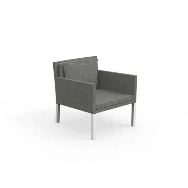 With its dynamic and particular shapes, the Step living armchair completes an outdoor living in full Talenti style. The relationship between the lightness of the seat and the backrest makes the product interesting, not common, feature that characterizes the collection. The structure is entirely in aluminium while the cushions and the armrests and backrest upholstery are in breathable textilene. Weather resistant.