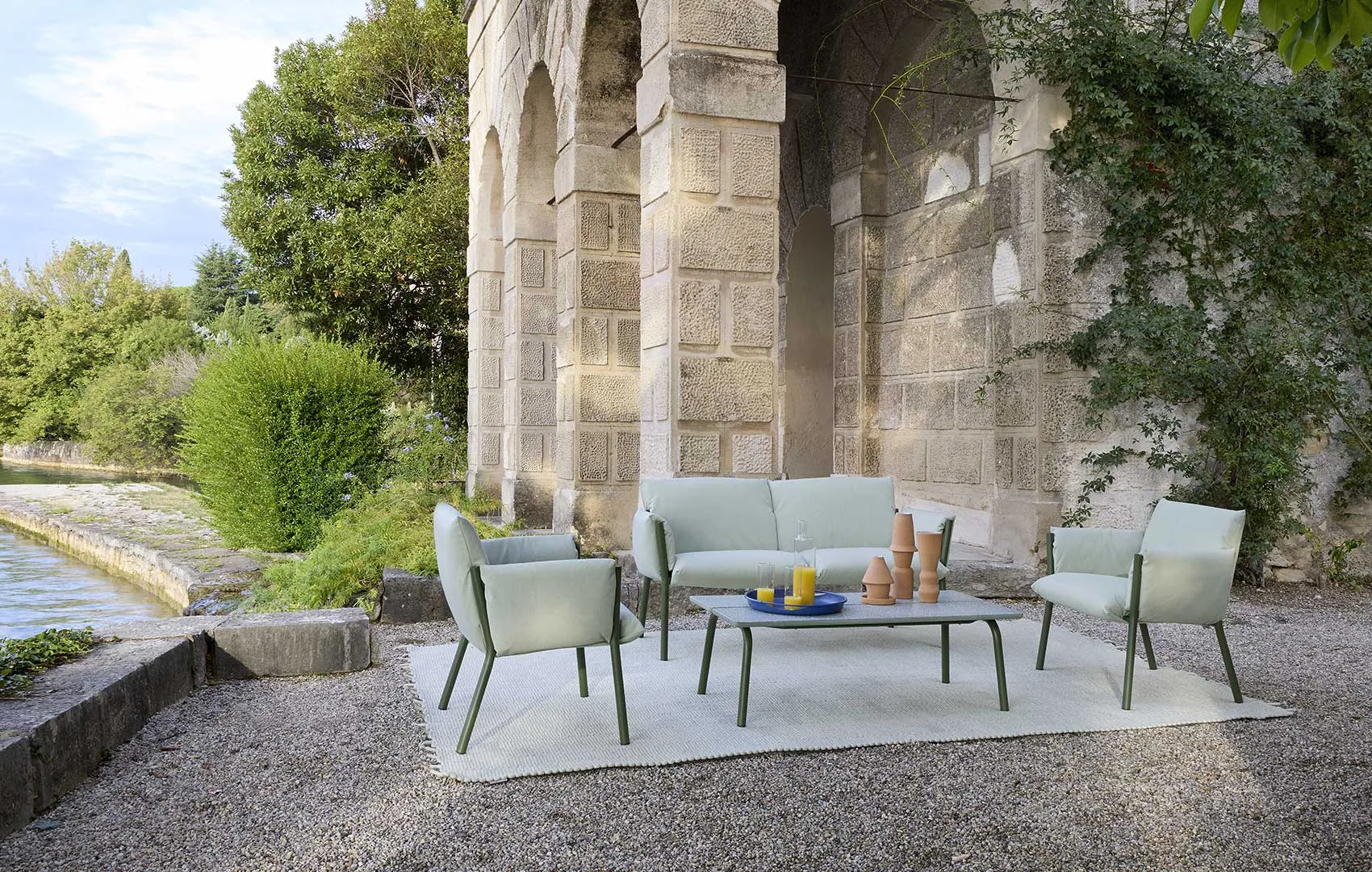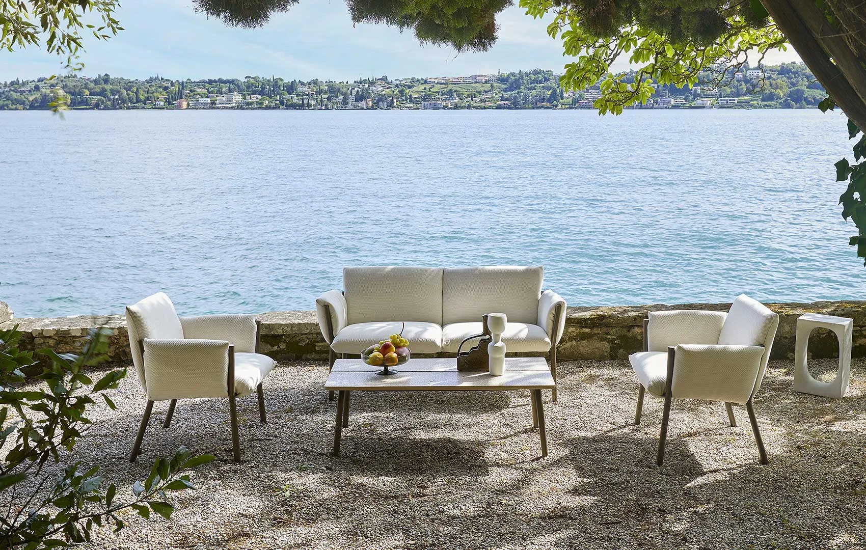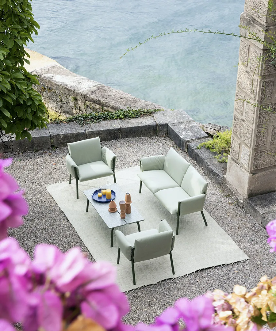 The Brezza outdoor seating family expands with two new pieces, a lounge armchair and a two-seater sofa.