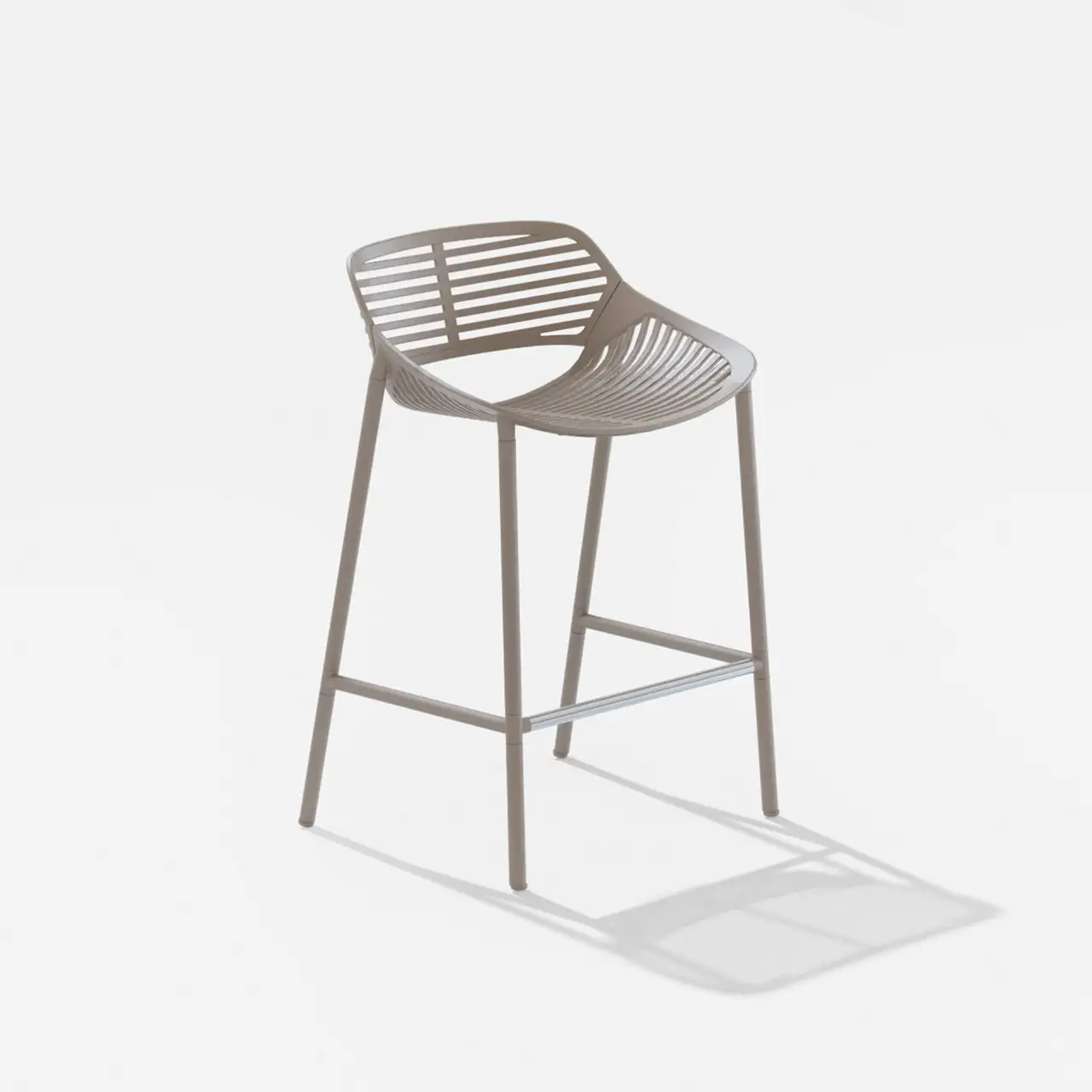 Stool in painted aluminium with footrest in polished stainless steel
