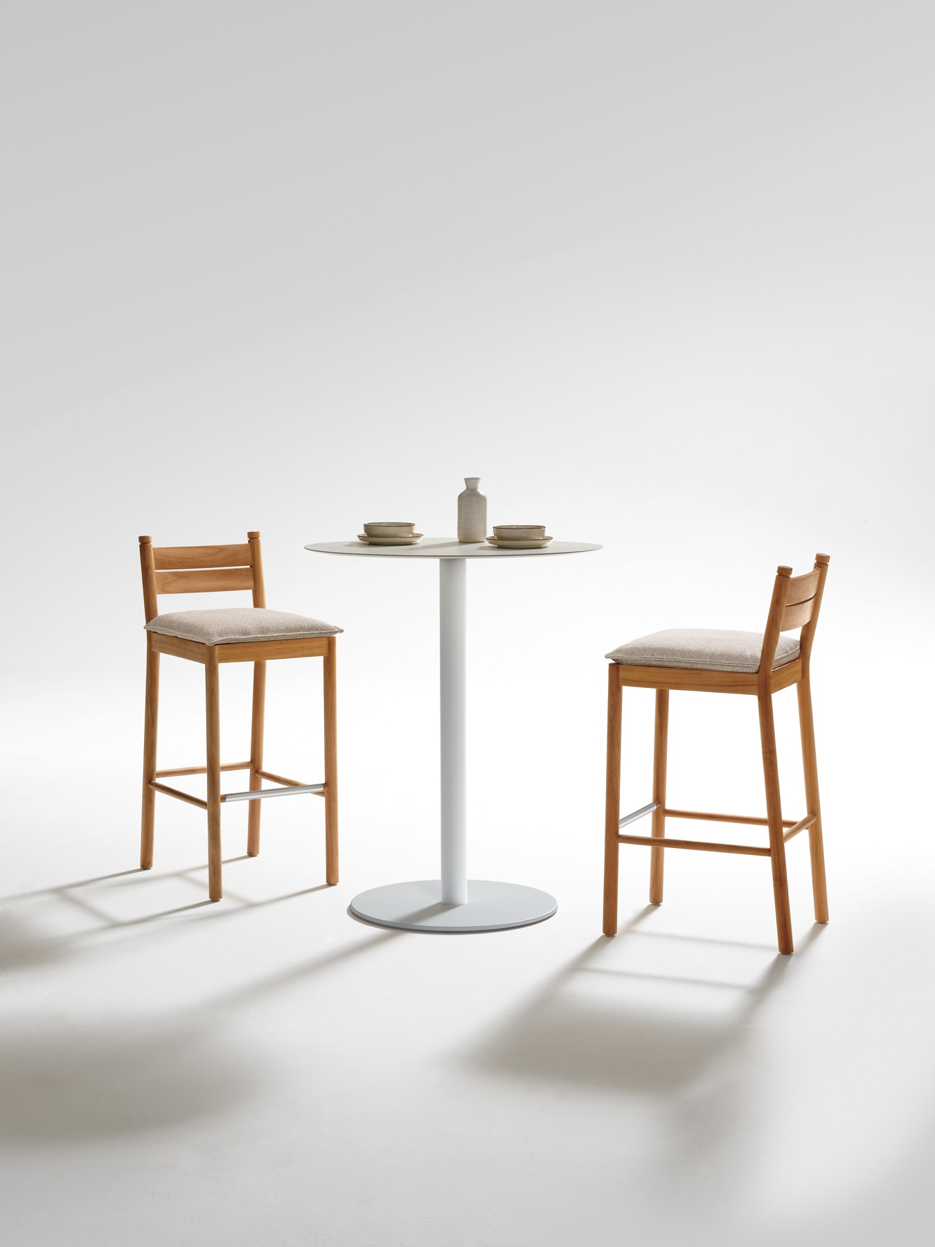Stackable chair and stool are available with optional seat cushion.