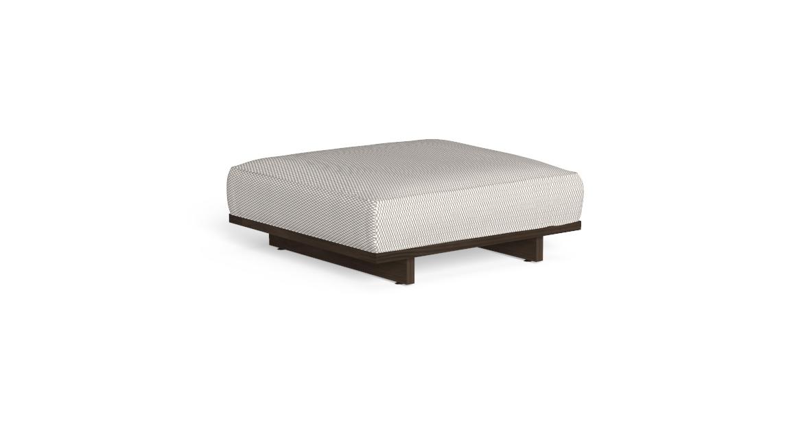 The Argo pouf is the ideal piece of furniture to complete your outdoor decor. The clean and essential lines of the wooden frame along with the sculptural shape of the upholstered cushion, highlight and enhance the geometric and rigorous look of the collection.