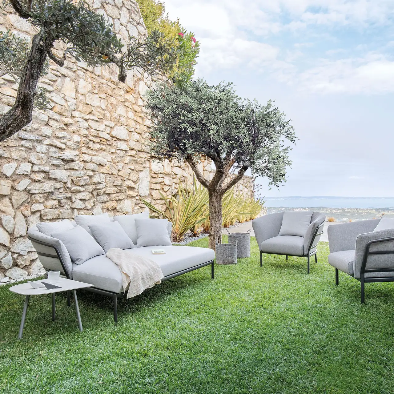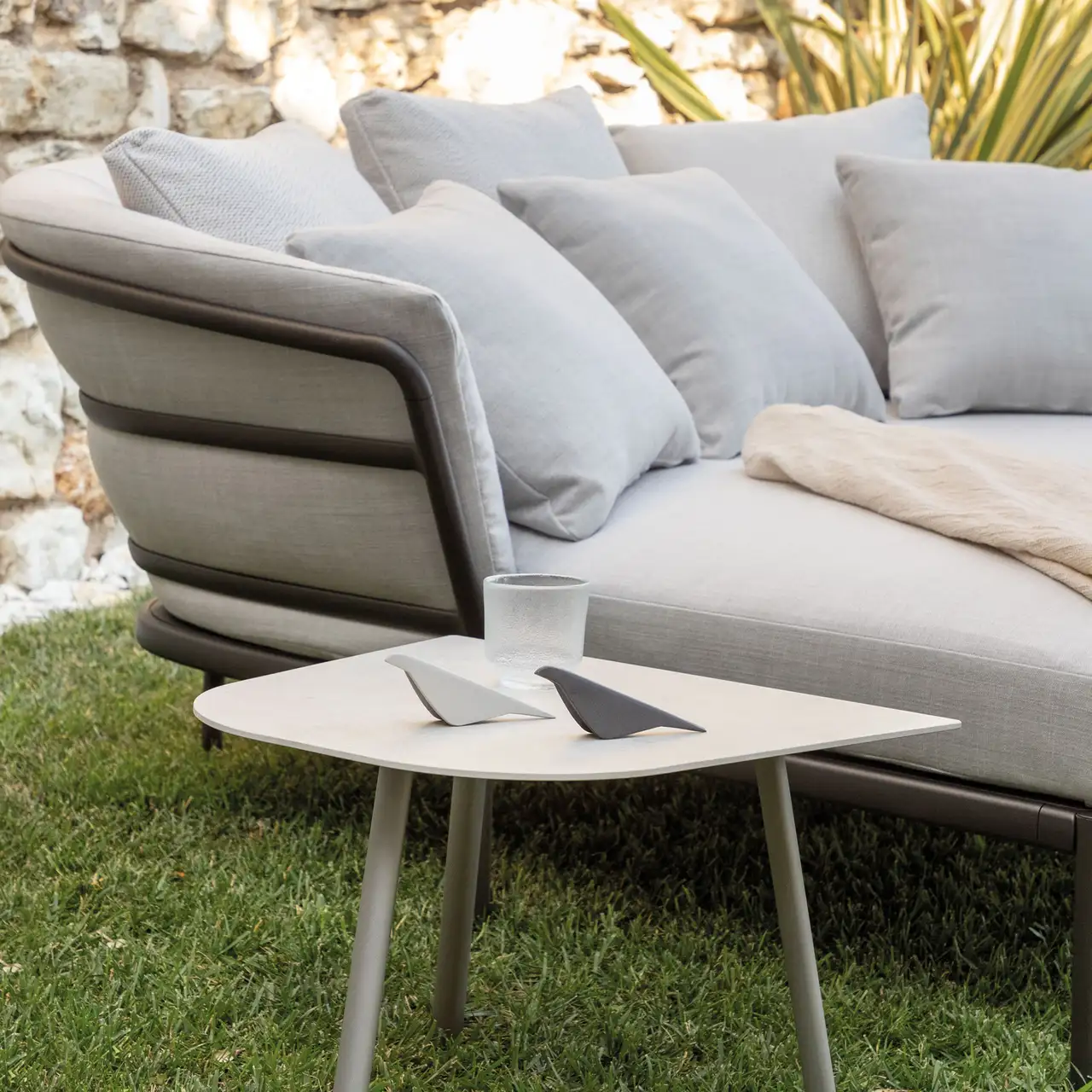 Daybed in painted aluminium with removable cushions and covers