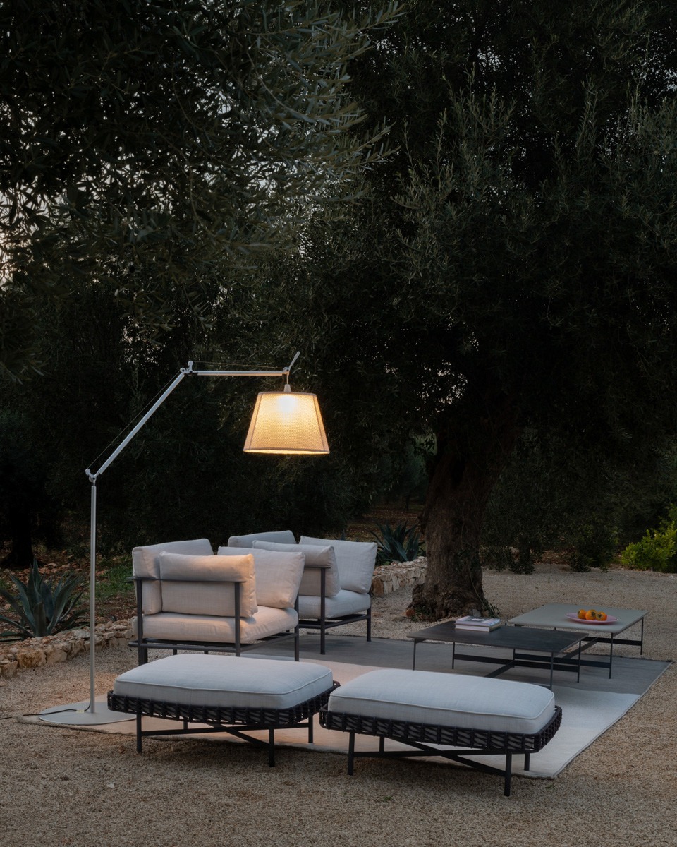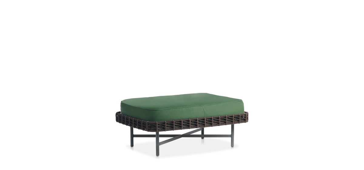 From exotic remembrances, Ropu stands out for the hand woven border in “Gassa” rope, which runs along the perimeter creating a frame for tops or soft cushions with mouse-tail profiles.Ropu is a pouf characterized by a structure in embossed anthracite painted metal and seat cushion padded in fire retardant polyurethane foam, available in the outdoor fabrics as per collection.The frame is in dark brown "Gassa" cord weaving.Proposed with an exotic taste, Ropu is a collection of pouf and coffee tables to be used individually or in bold combinations of colors and shapes, at home as well as outdoors for convivial and relaxing moments.