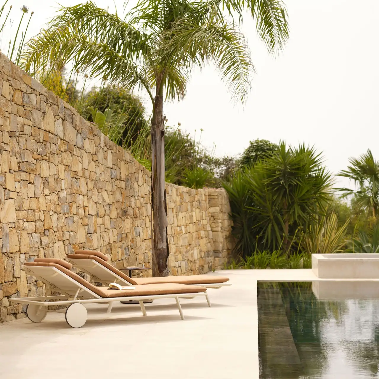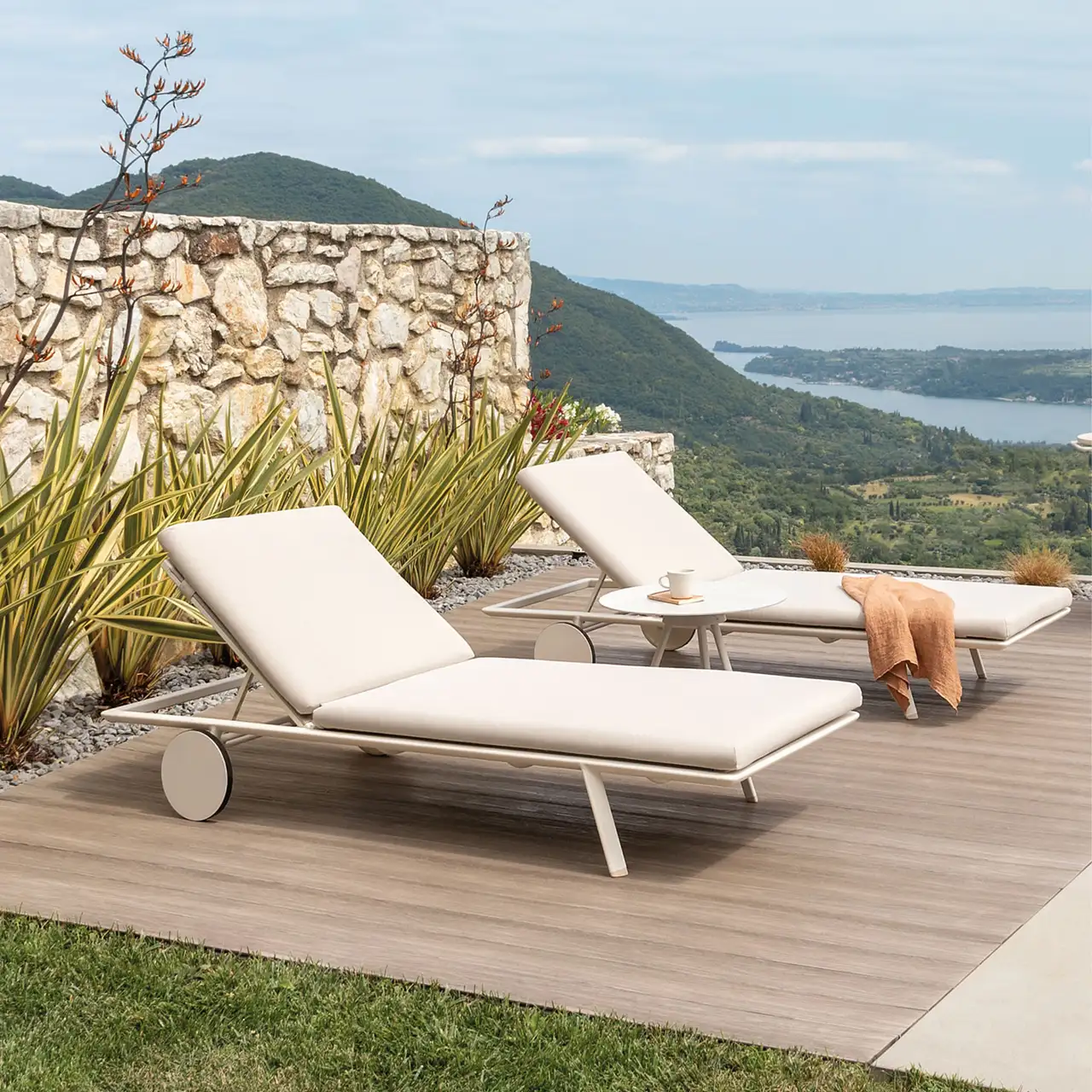 Sunlounger in painted aluminium and Batyline fabric with castors